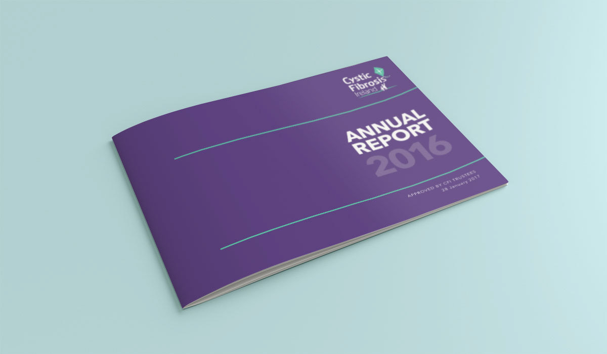 Pearse designed Cystic Fibrosis Ireland's 2016 Annual Report and produced the 40 page report over a short two week period in order to have 4,000 copies printed and posted six weeks prior to CFI's 2017 AGM.